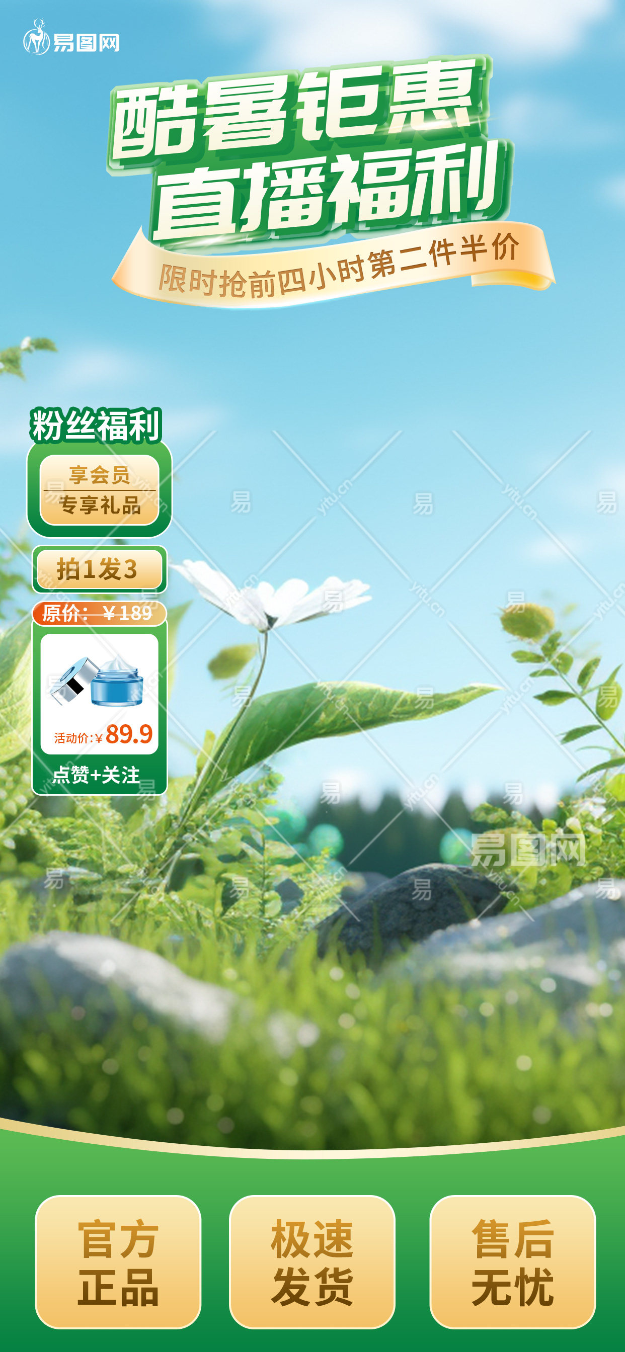 酷暑钜惠直播福利直播间背景绿色AIGC电商背景