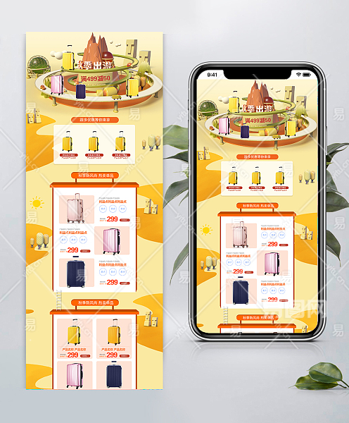 当前的位置:首页 > 广告设计 > 电商海报 > 鞋类箱包 > C4D风格金秋出游秋季出游箱包首页模板