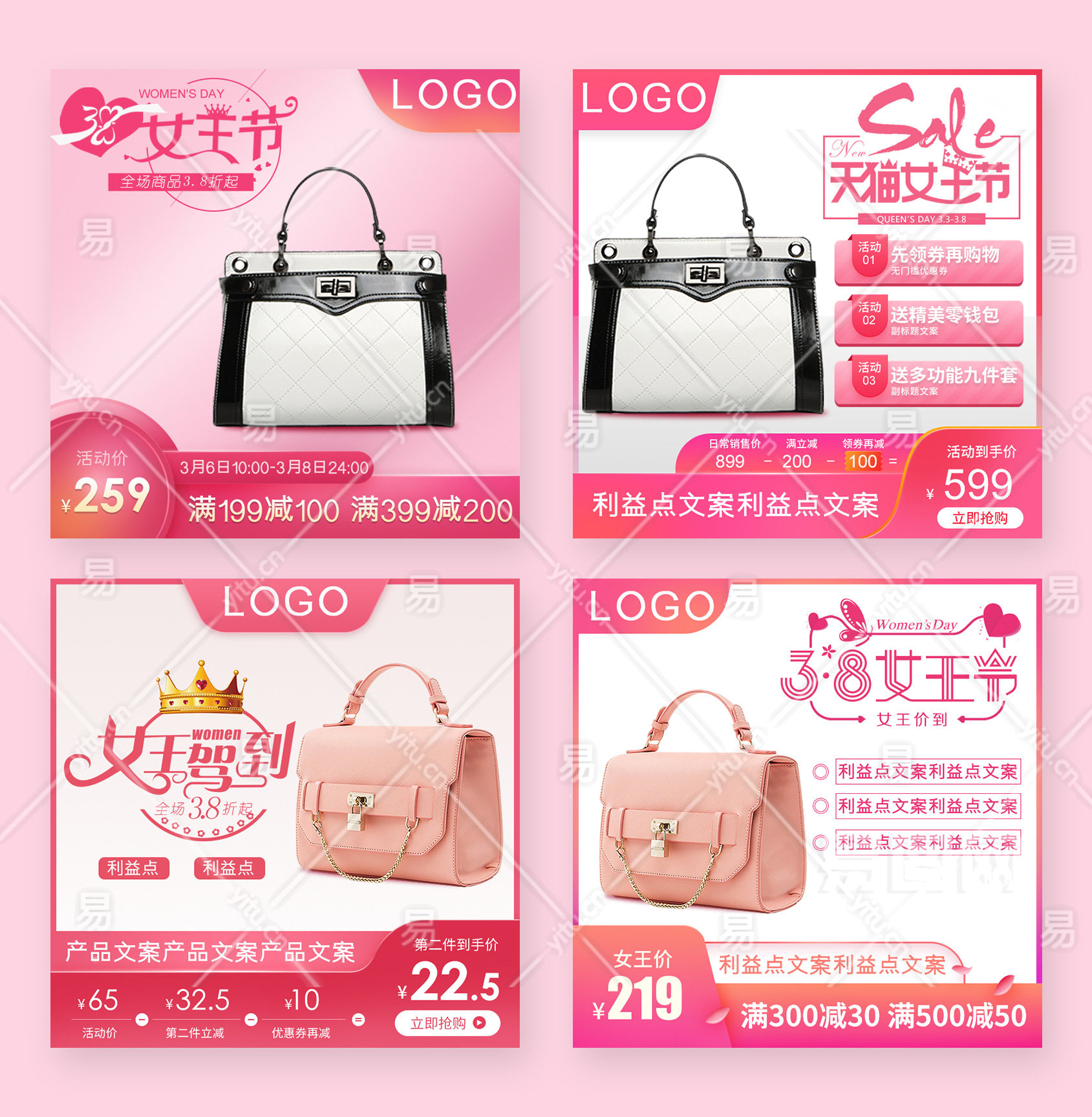 当前的位置:首页 > 广告设计 > 电商海报 > 鞋类箱包 > 聚划算粉色箱包38女王节妇女节主图直通车