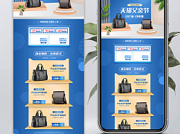 天猫淘宝父亲节首页感恩父亲蓝色清新真皮皮具箱包电商促销活动
