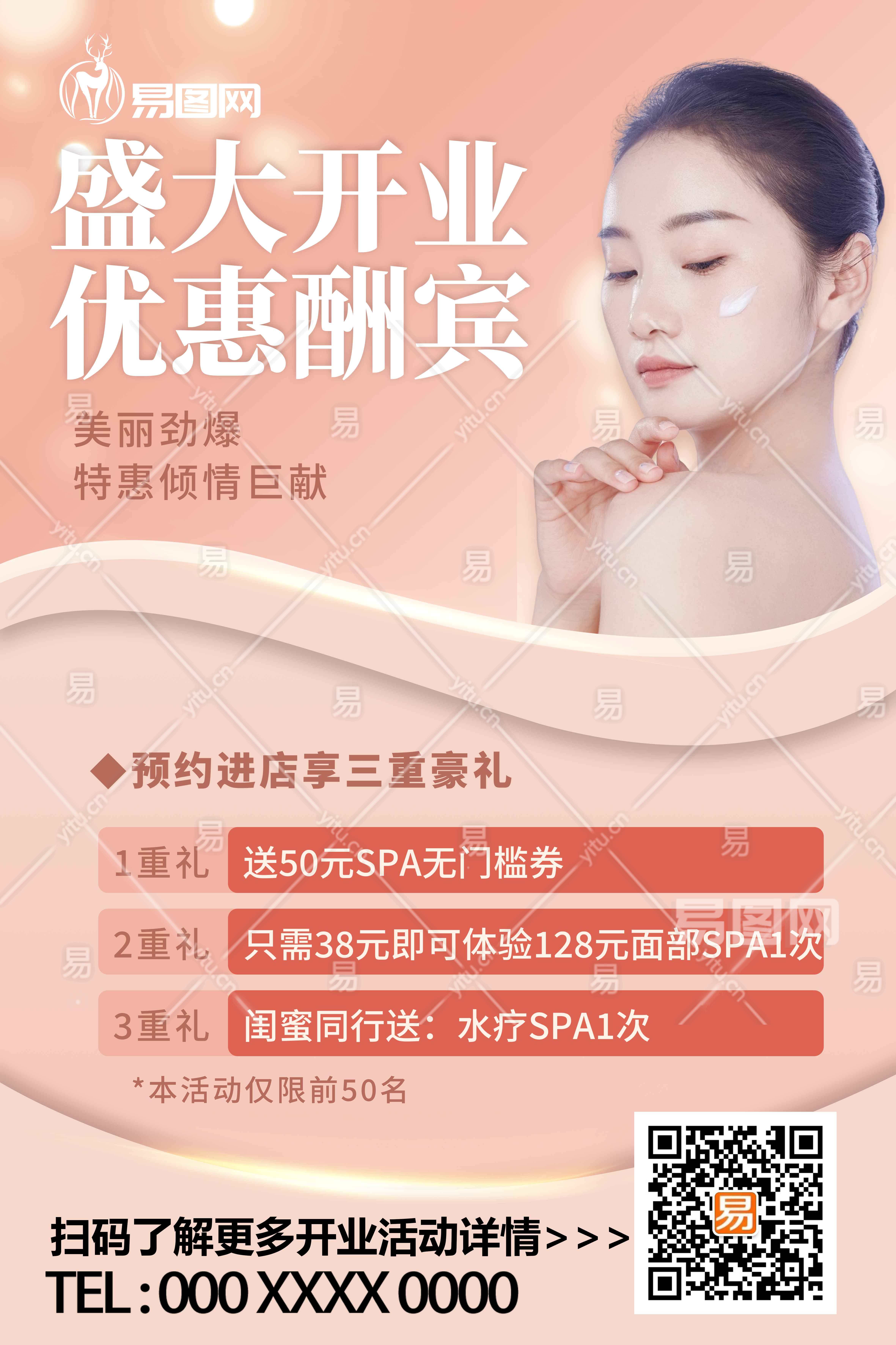 简约美容院开业促销海报