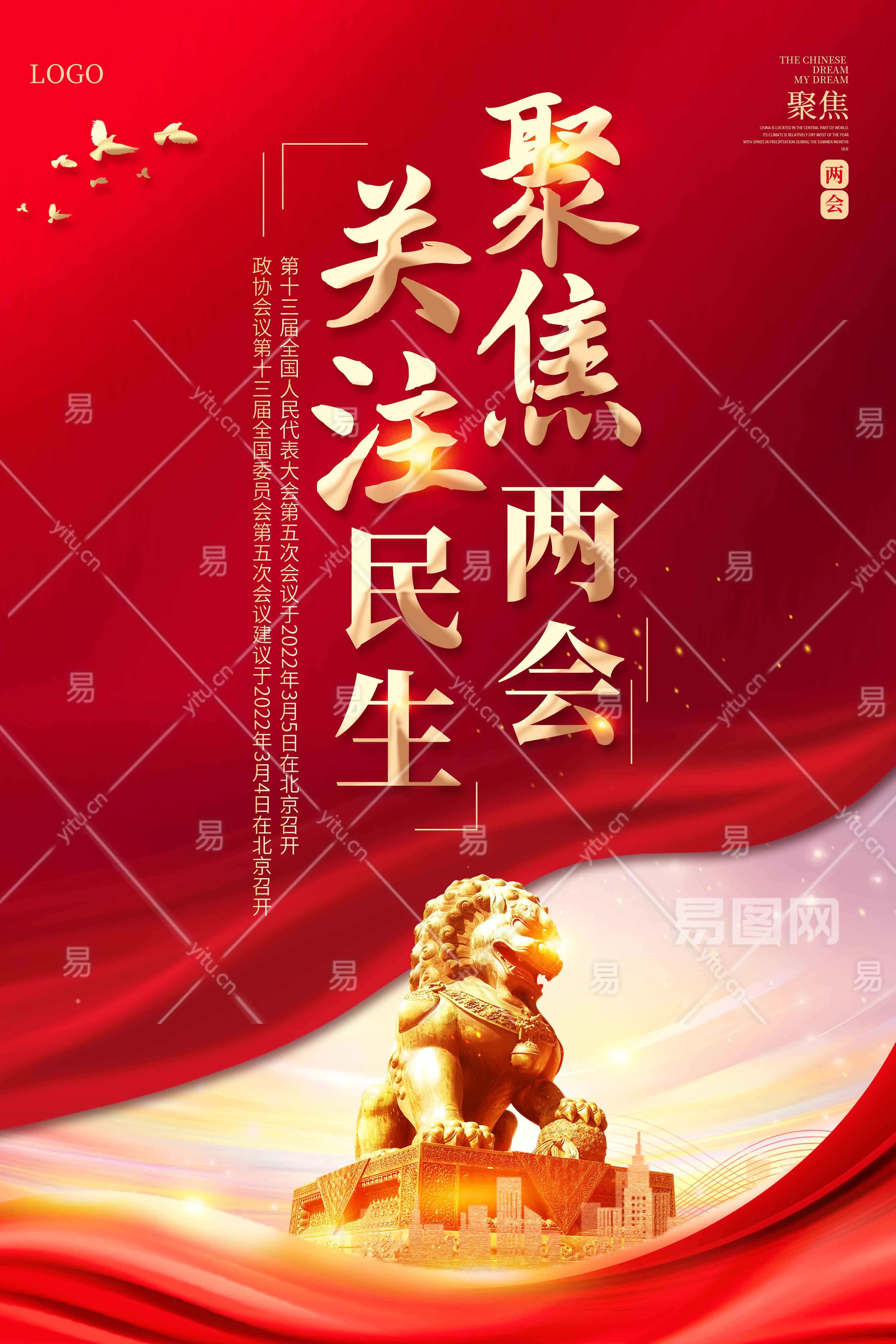2022红色党建聚焦全国两会海报党建党政党课全国两会