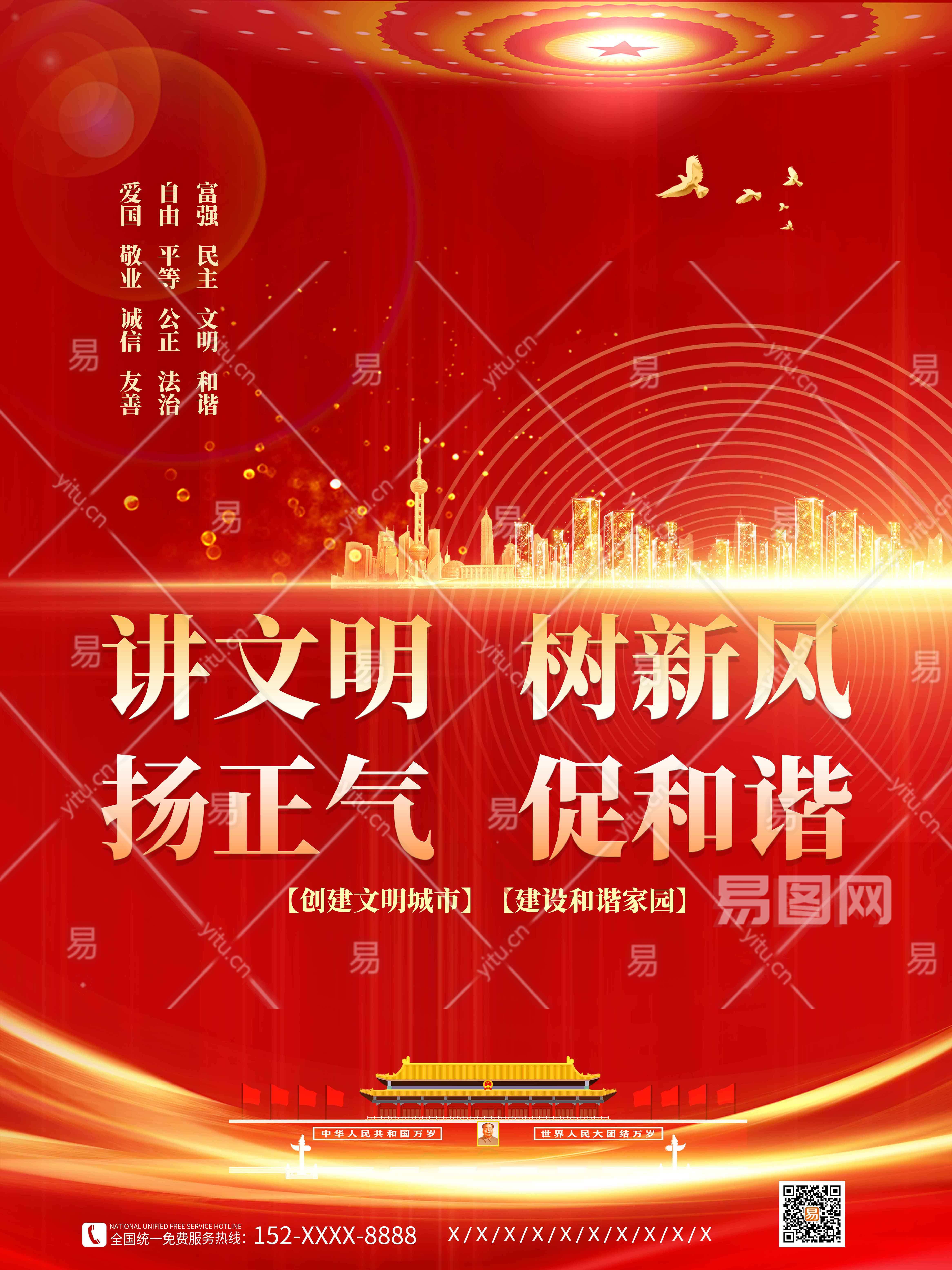 当前的位置:首页 > 广告设计 > 海报 > 党建海报 > 红色背景讲文明树新风党建风海报