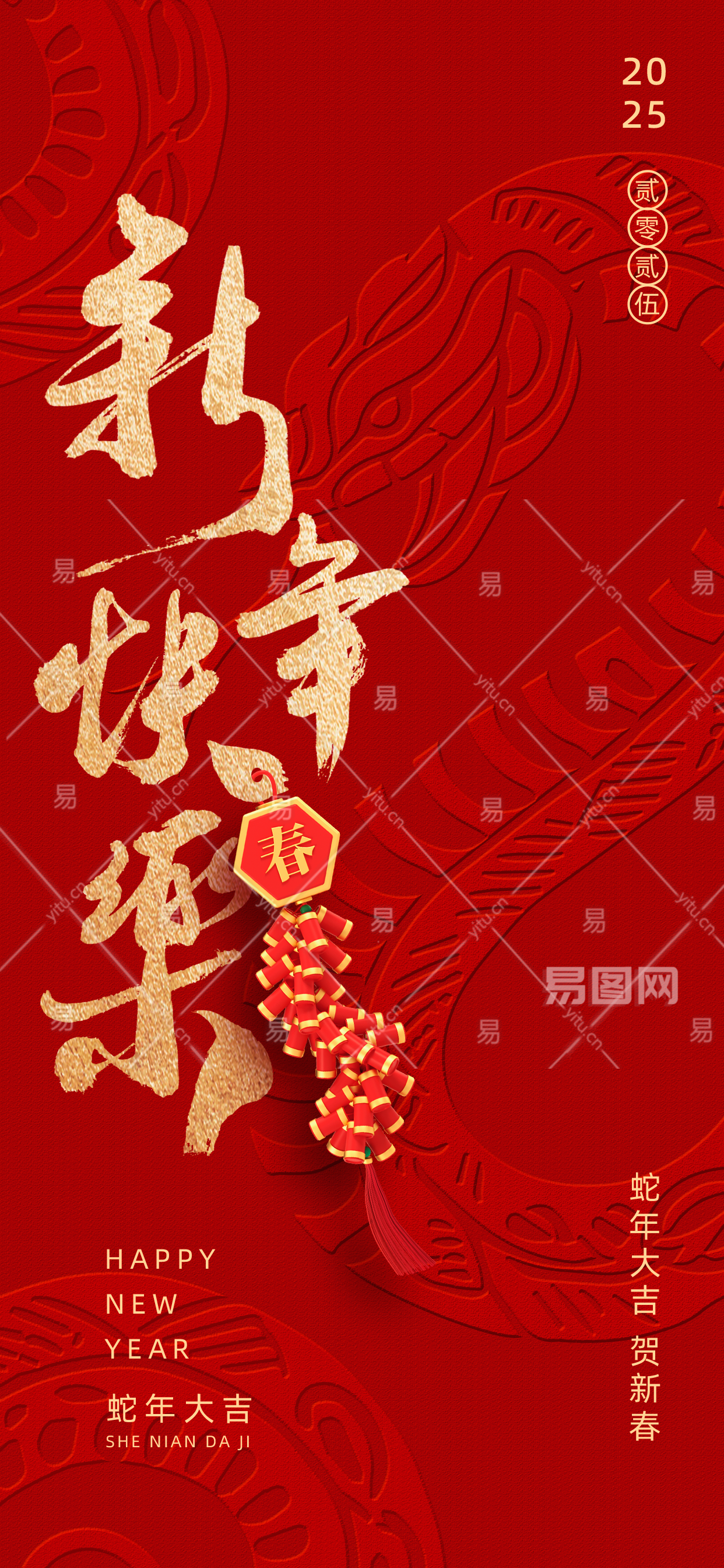 大气凹凸质感蛇年春节新年