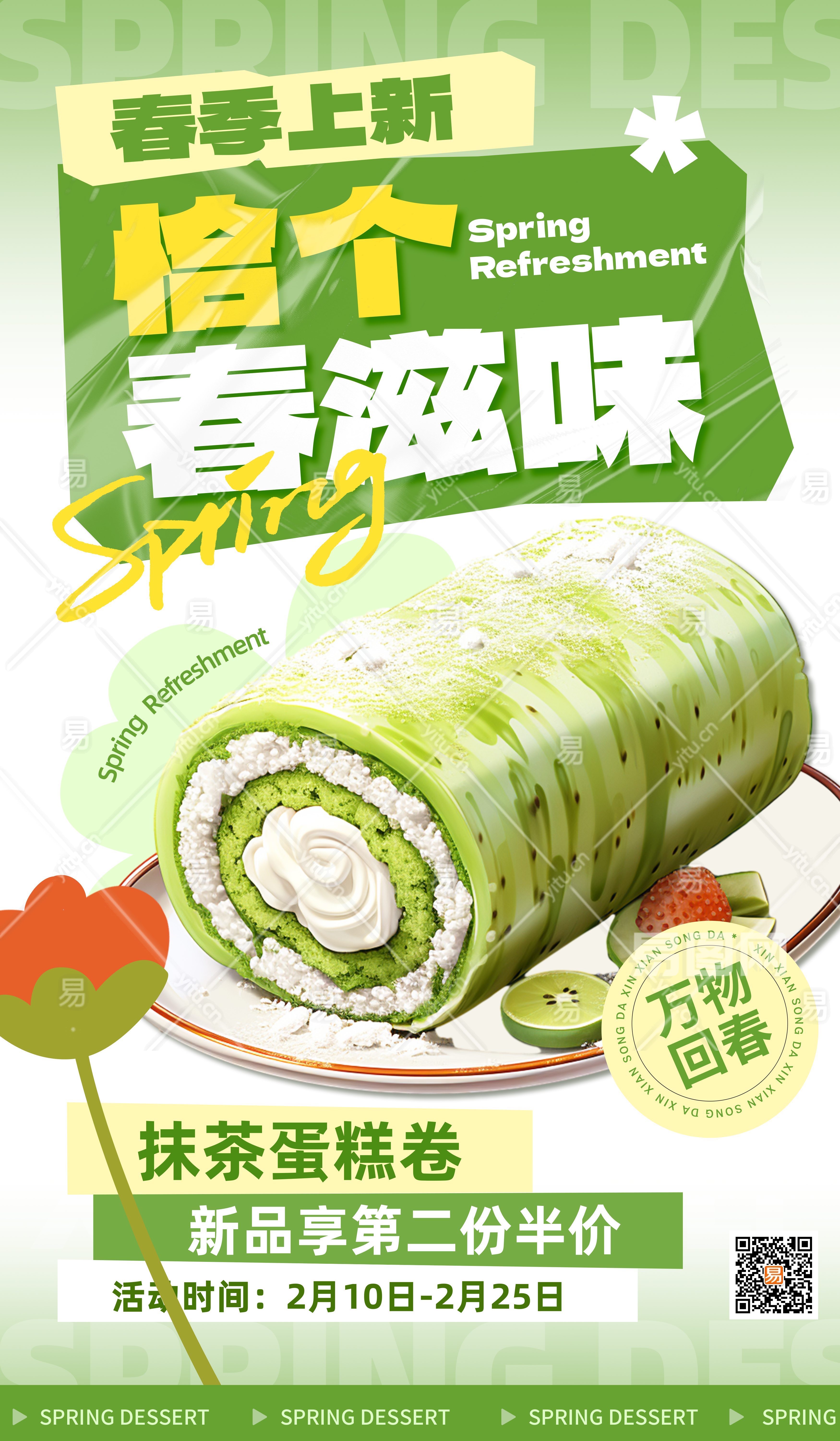 春季甜品美食绿色简约海报