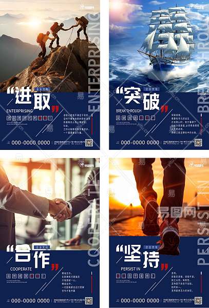 当前的位置:首页 > 广告设计 > 海报 > 企业文化海报 > 简约现代企业文化团队精神系列海报