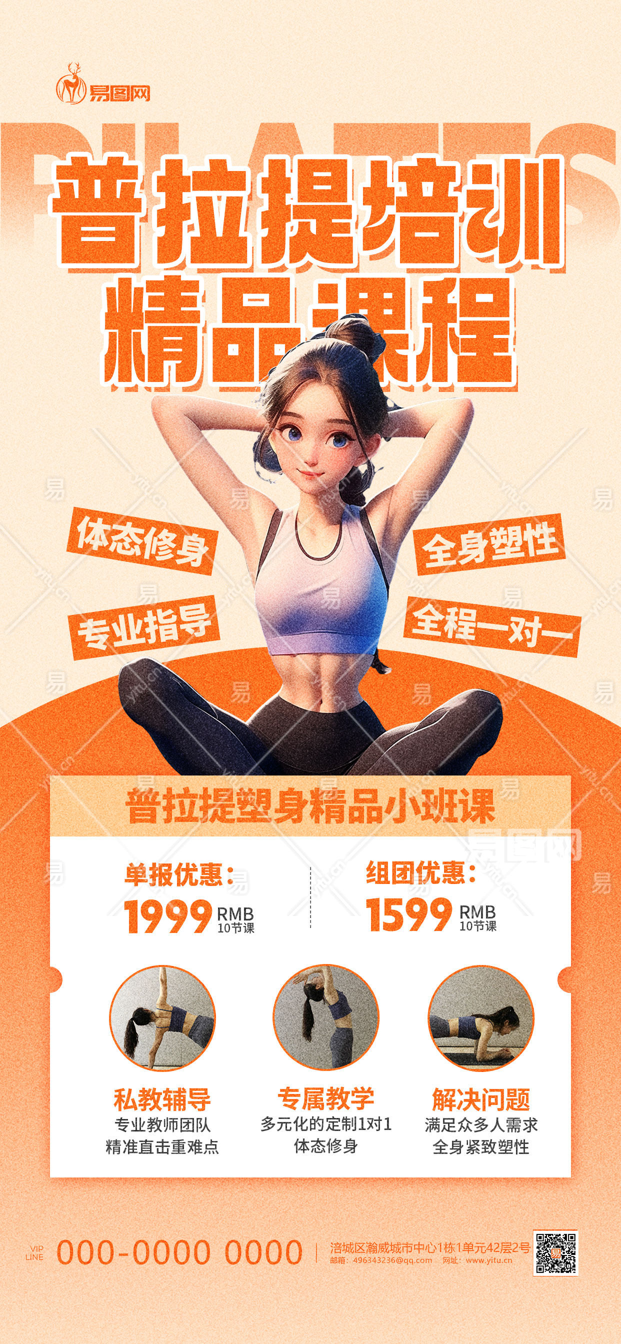 普拉提运动健身 橙色简约大气长图海报海报设计素材