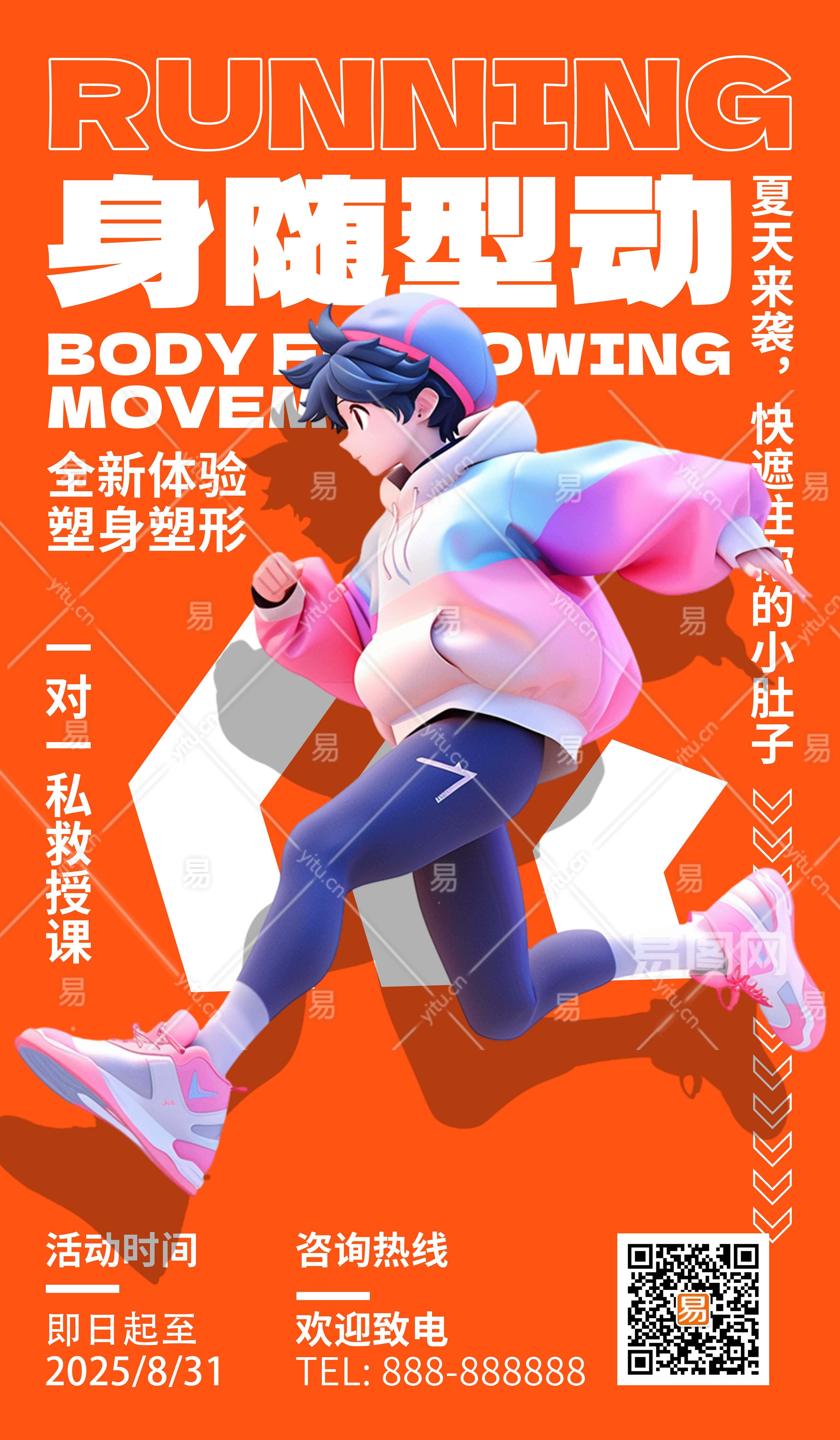 关键词: 运动健身橙色AIGC海报广告营销促销海报设计素材_素材中国_素材网_图片素材_PSD素材-素材库 素材库,易图素材网_运动健身橙色AIGC海报广告营销促销海报免费素材共享平台.图片素材图库提供海量素材,图片下载,设计素材,PSD源文件,矢量图,AI,CDR,EPS,广告设计素材、VI设计素材、电商模板素材网和高清图片下载网站,提供海量的招聘海报模板素材、VI设计素材、名片设计素材、LOGO素材、网页设计模板等PS素材和高清图片下载,为设计行业优质的中国素材网站 特别说明:本站所有资源仅供学习与参考,请勿用于商业用途,如有侵犯您的版权,请及时发邮件联系我们(496343236@qq.com),我们将尽快处理。
