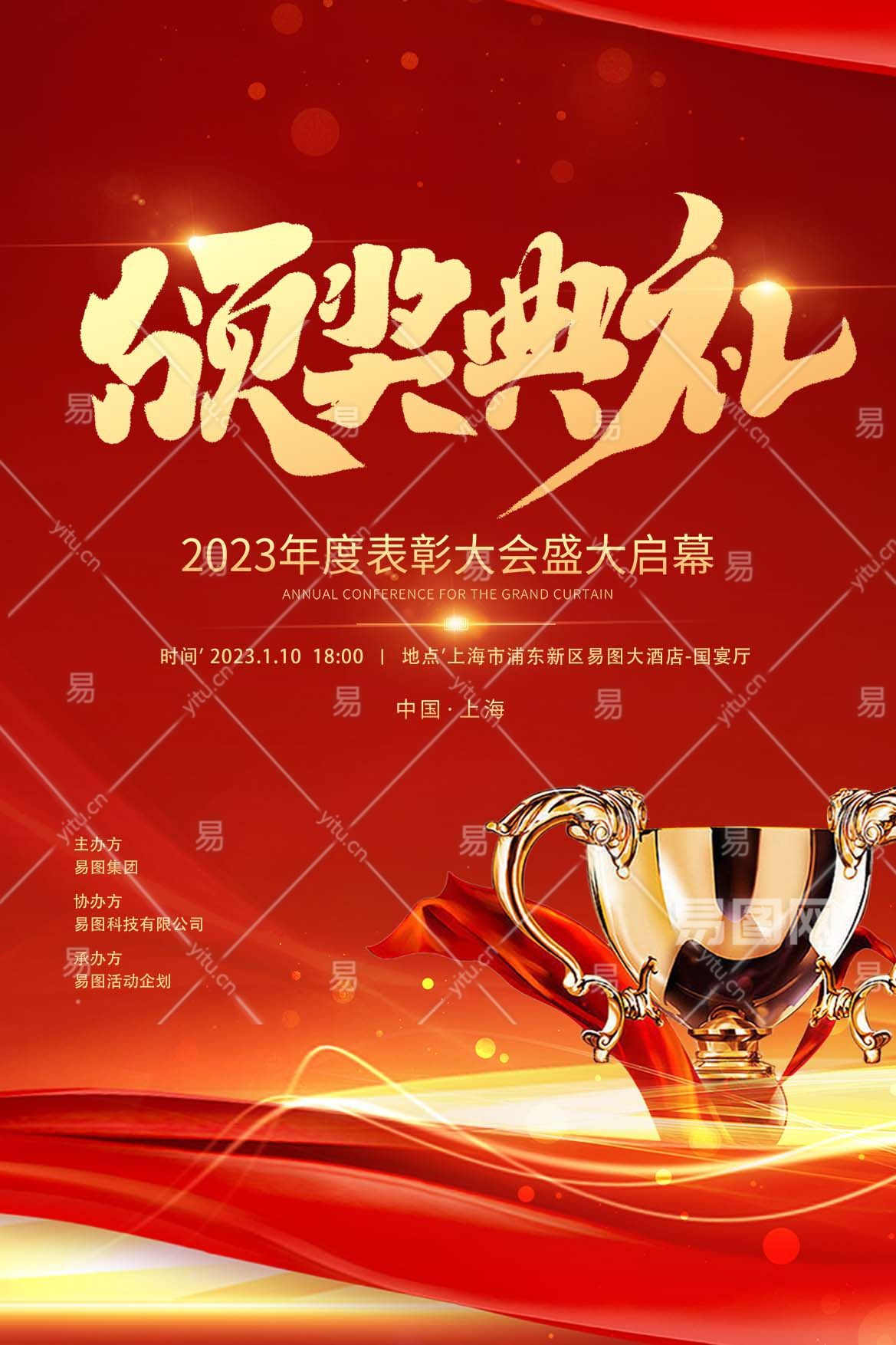 颁奖典礼晚会年会奖杯绸缎红金色大气海报