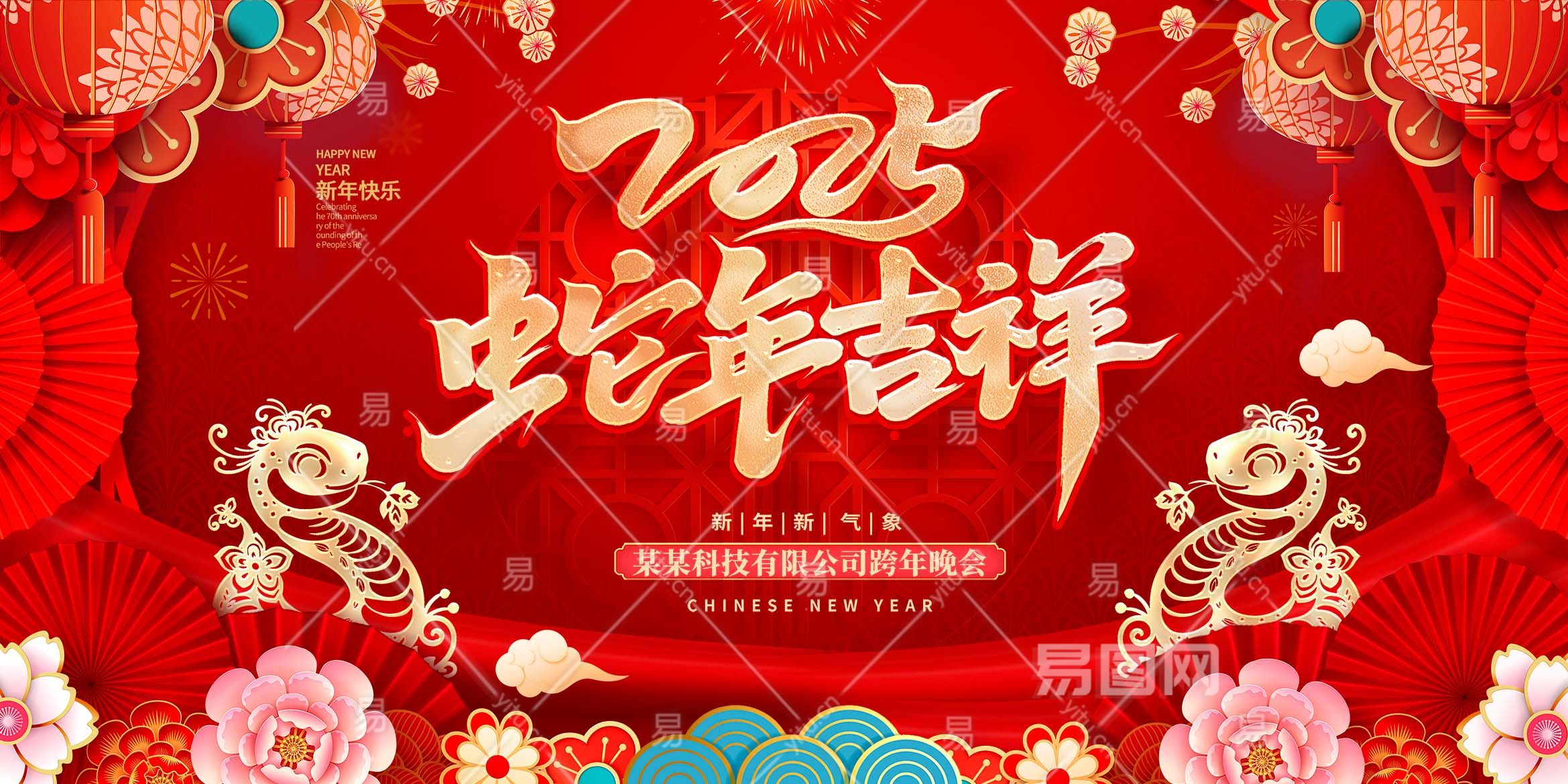红色中国风剪纸2025蛇年年会晚会海报