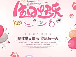 粉色创意简约生日快乐舞台海报