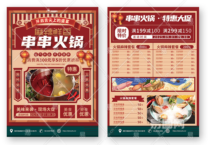 红色串串火锅促销餐饮美食火锅店宣传单菜单
