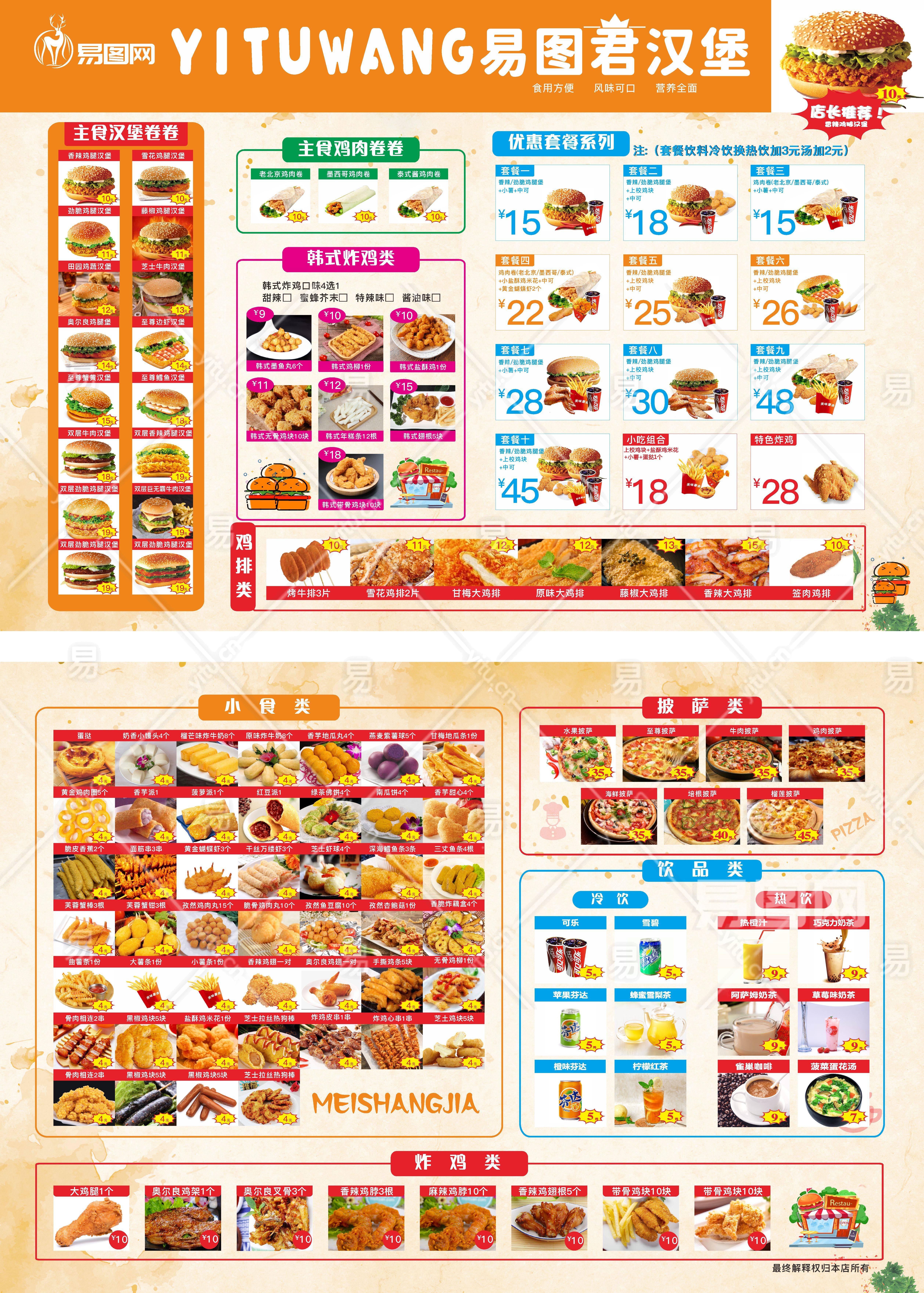 黄色汉堡炸鸡价目表汉堡橙色简约菜单