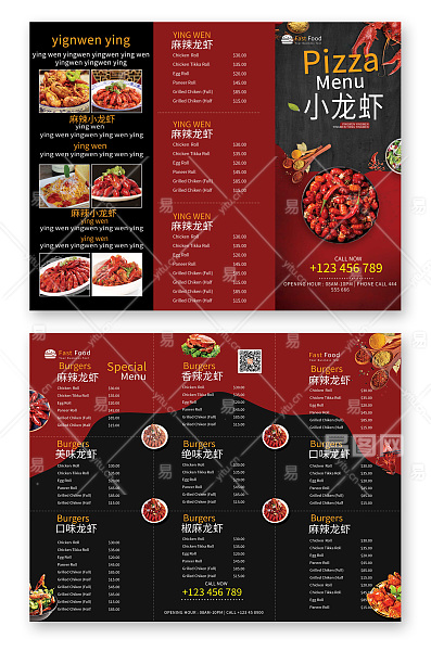 当前的位置:首页 > 广告设计 > 画册/装帧 > 菜谱设计 > 美食餐厅餐饮餐饮红色背景小龙虾菜单三折页