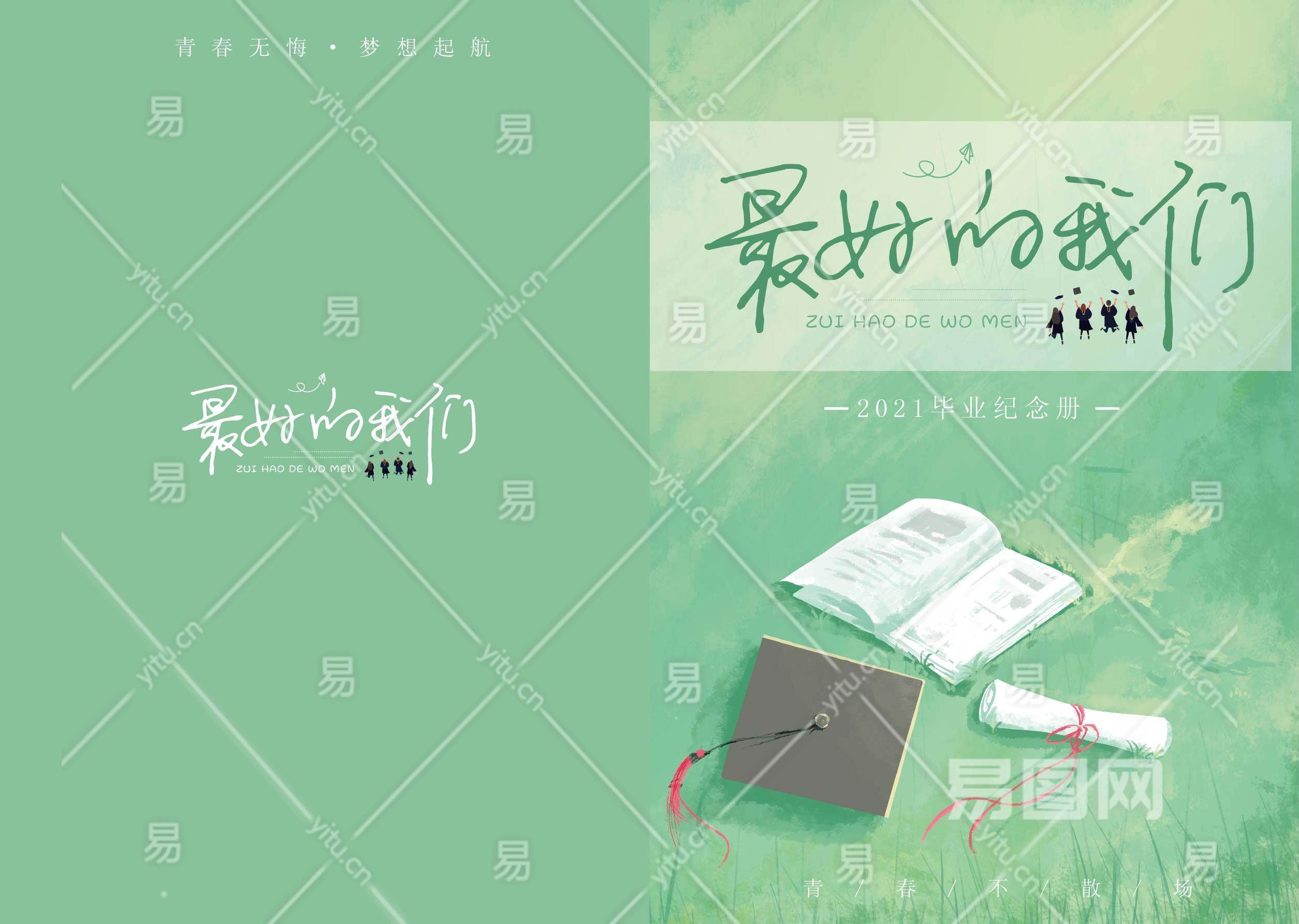 绿色小清新手绘风卡通毕业青春纪念册封面毕业纪念册封面
