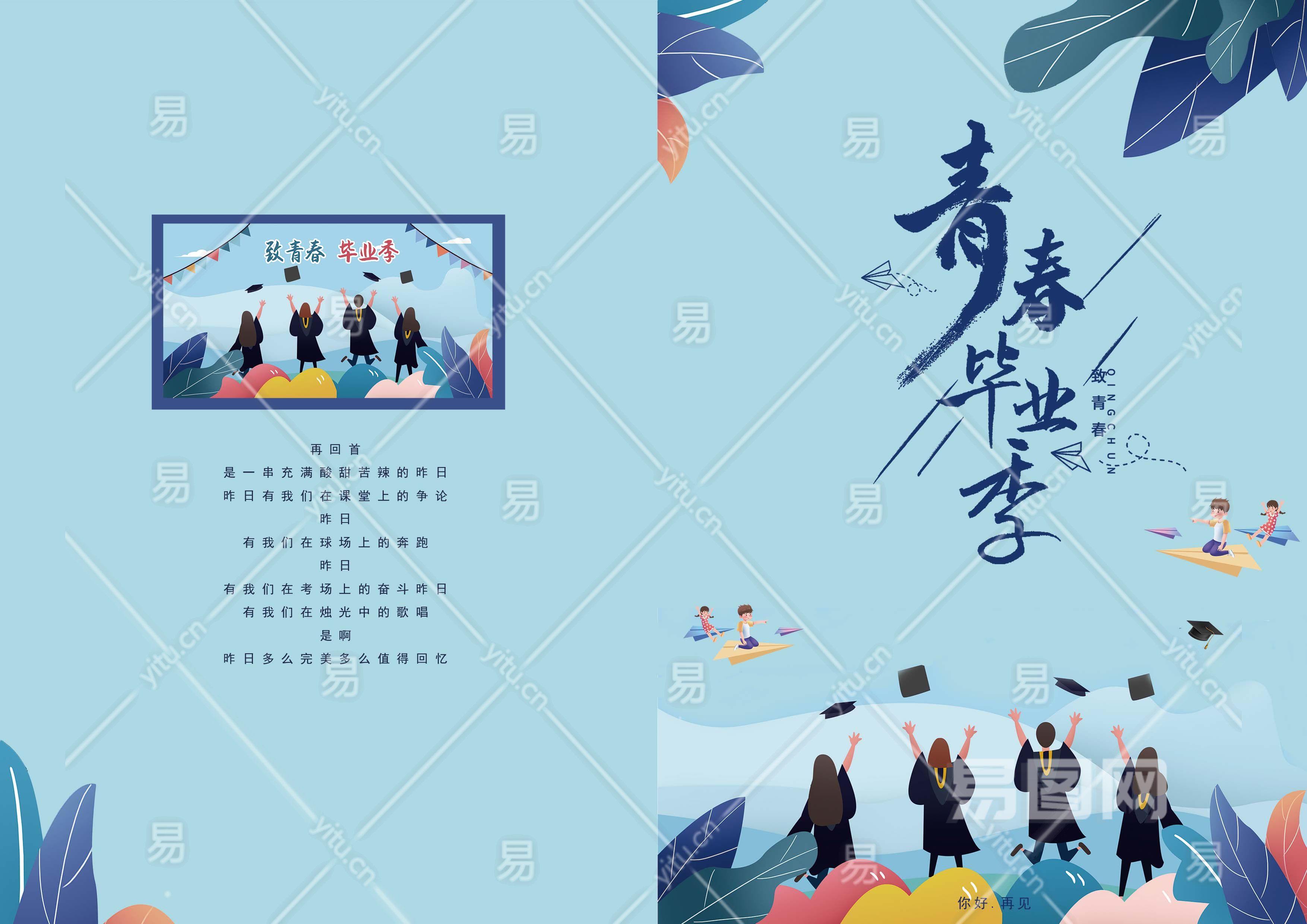 蓝色插画风格毕业纪念册书籍手册封面毕业纪念册封面