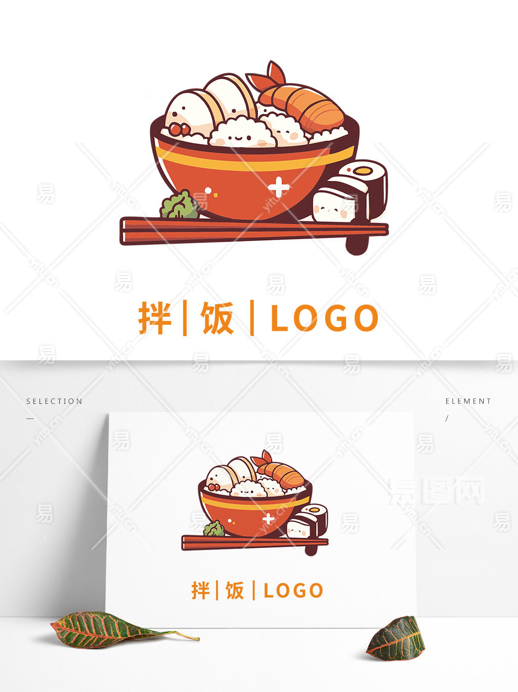 卡通美食餐饮海鲜虾拌饭LOGO图标