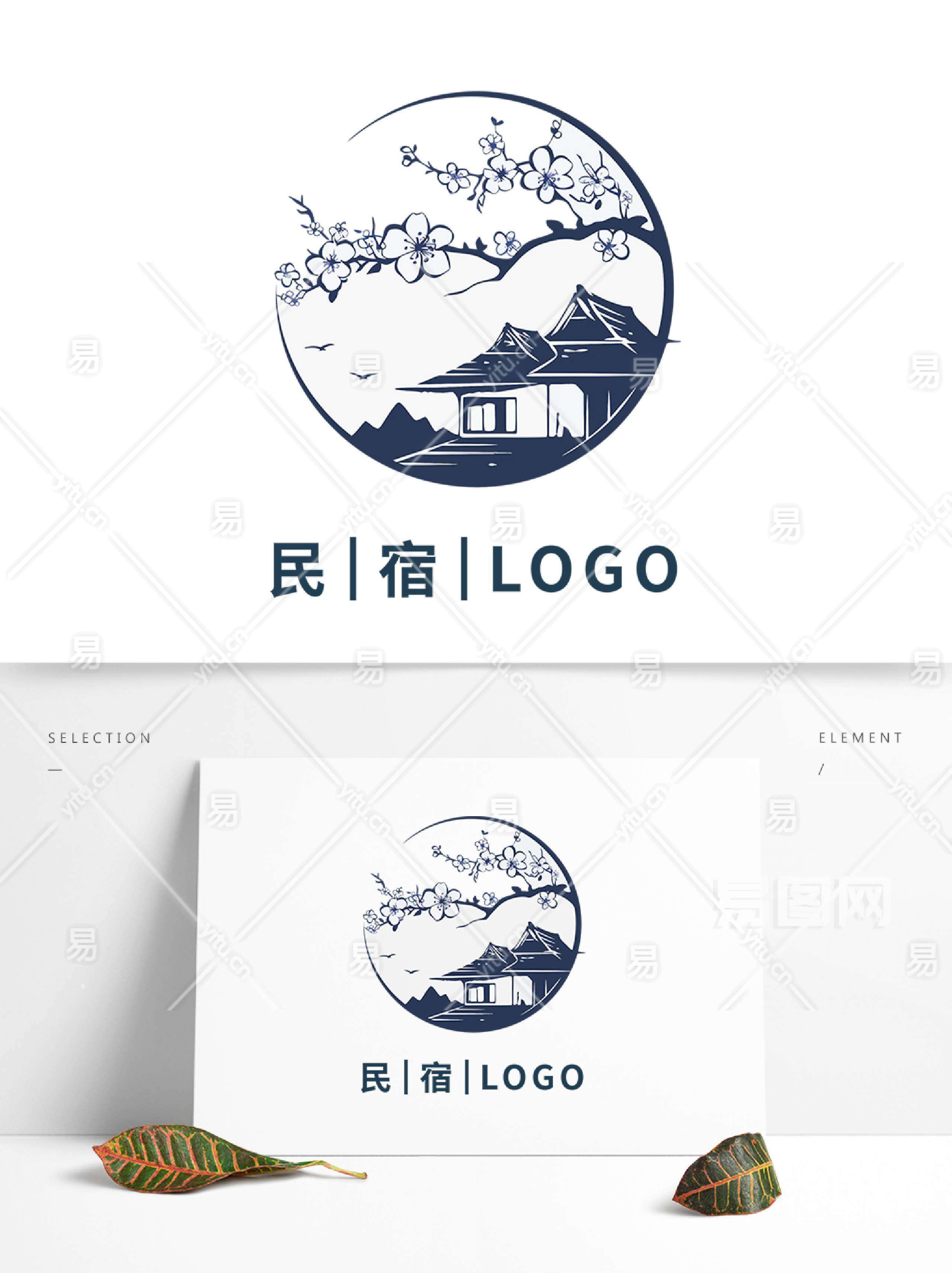 旅游酒店住宿梅花房子元素民宿LOGO