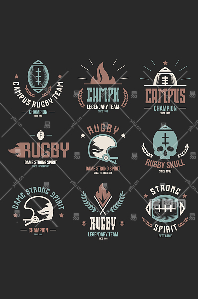 当前的位置:首页 > 广告设计 > LOGO/标识 > 运动/健身 > 复古矢量橄榄球运动LOGO元素