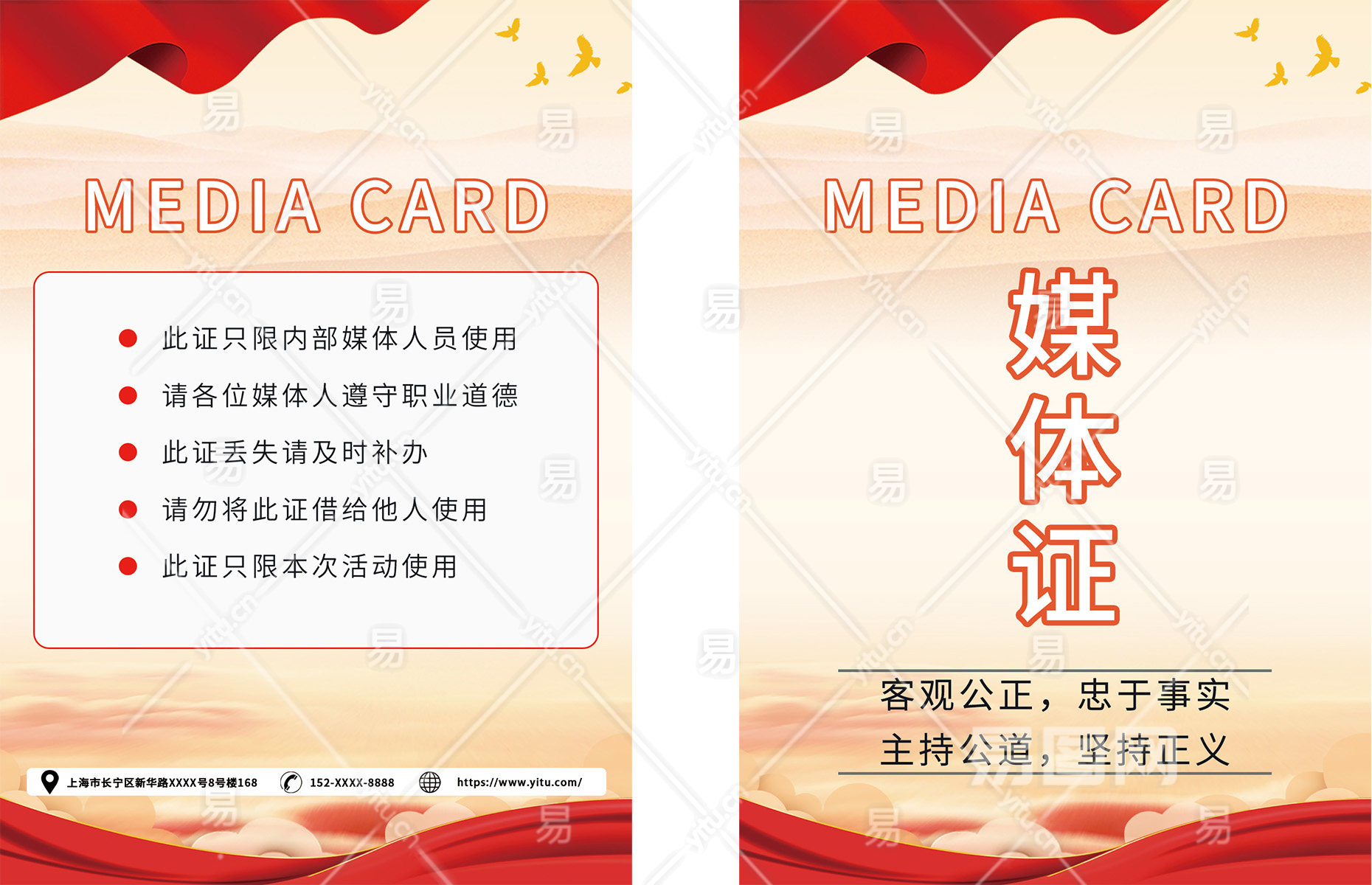 当前的位置:首页 > 广告设计 > 名片/卡证 > 工作证模板 > 红色大气媒体记者工作牌工作证