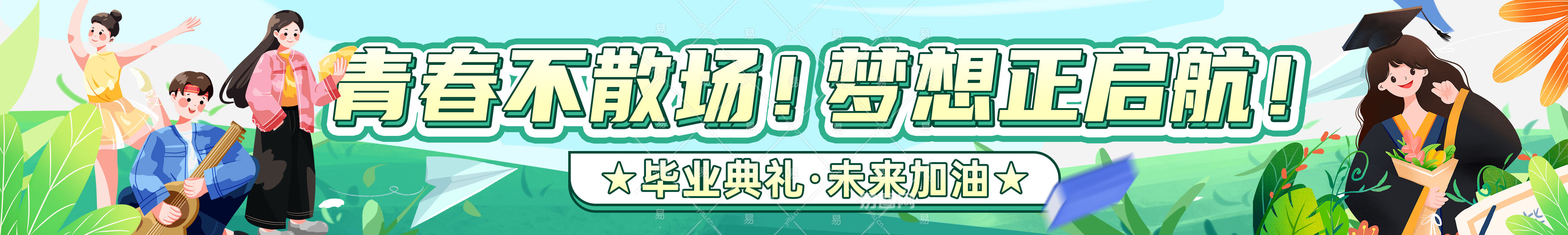 绿色插画风毕业毕业季毕业典礼加油横幅条幅背景