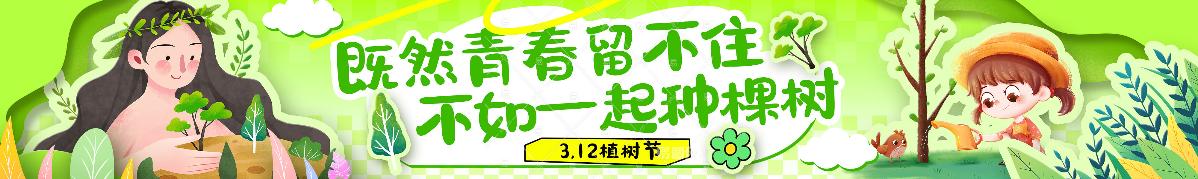 浅绿色剪纸风拼贴风312植树节活动宣传横幅条幅背景