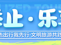 浅蓝色插画风文明旅游文明出行宣传横幅条幅背景