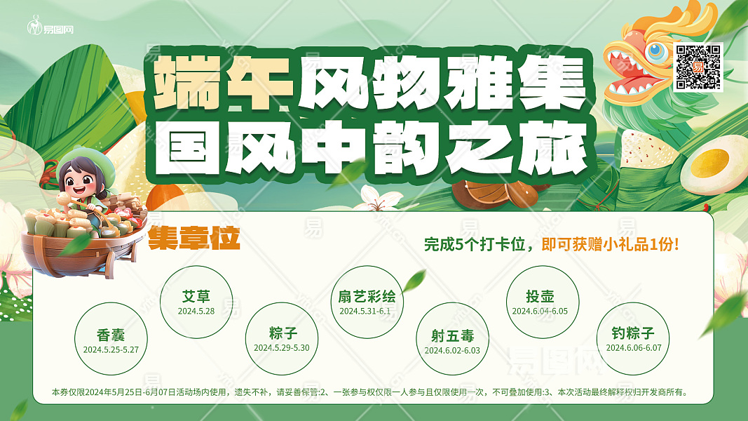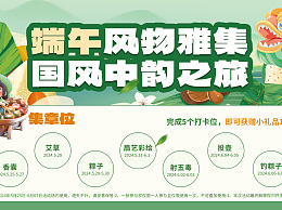 绿色集章卡端午节活动国潮印刷物料手机广告海报设计图片