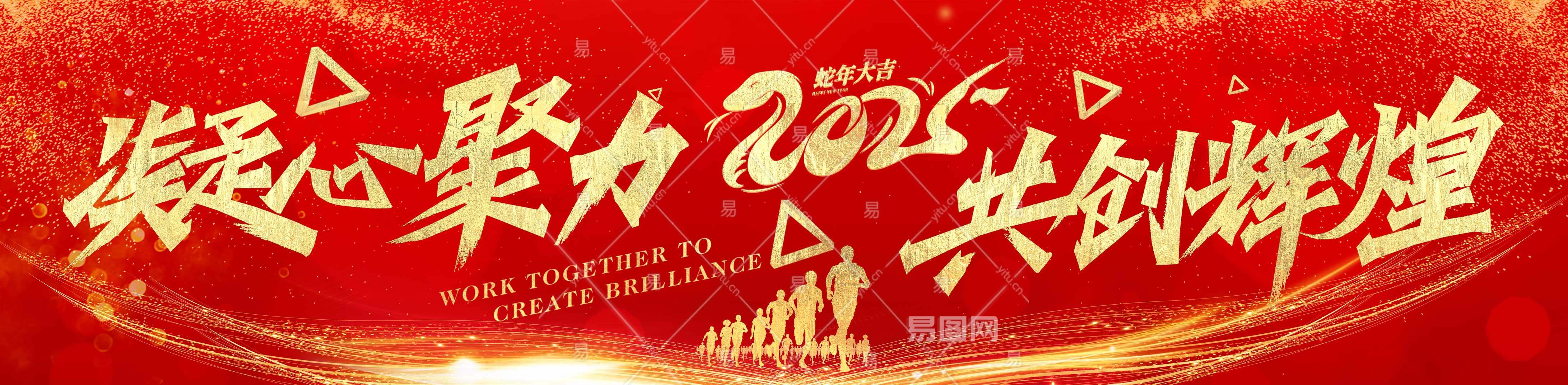 红色炫光2025企业励志年会典礼条幅公司活动横幅年会条幅