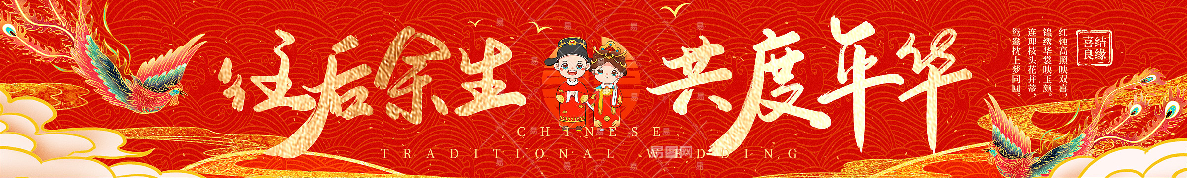 红色新中式风结婚婚庆婚礼宣传祝福横幅