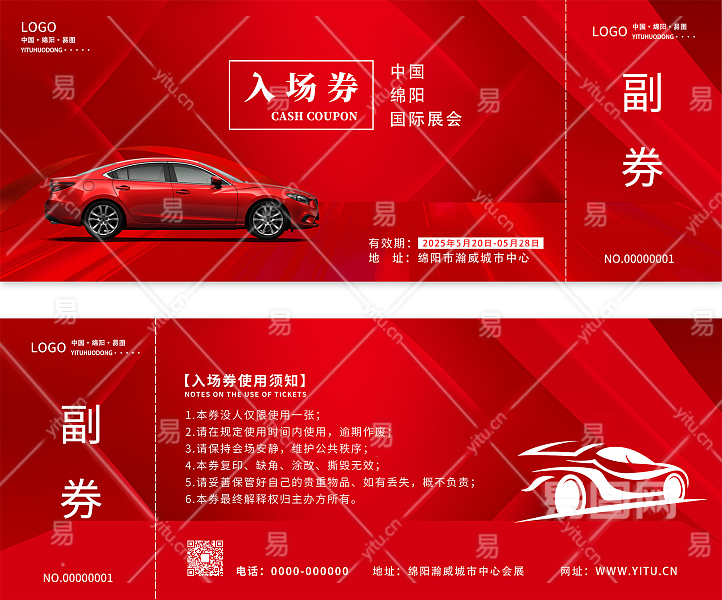 红色科技感汽车车展卡券科技入场券