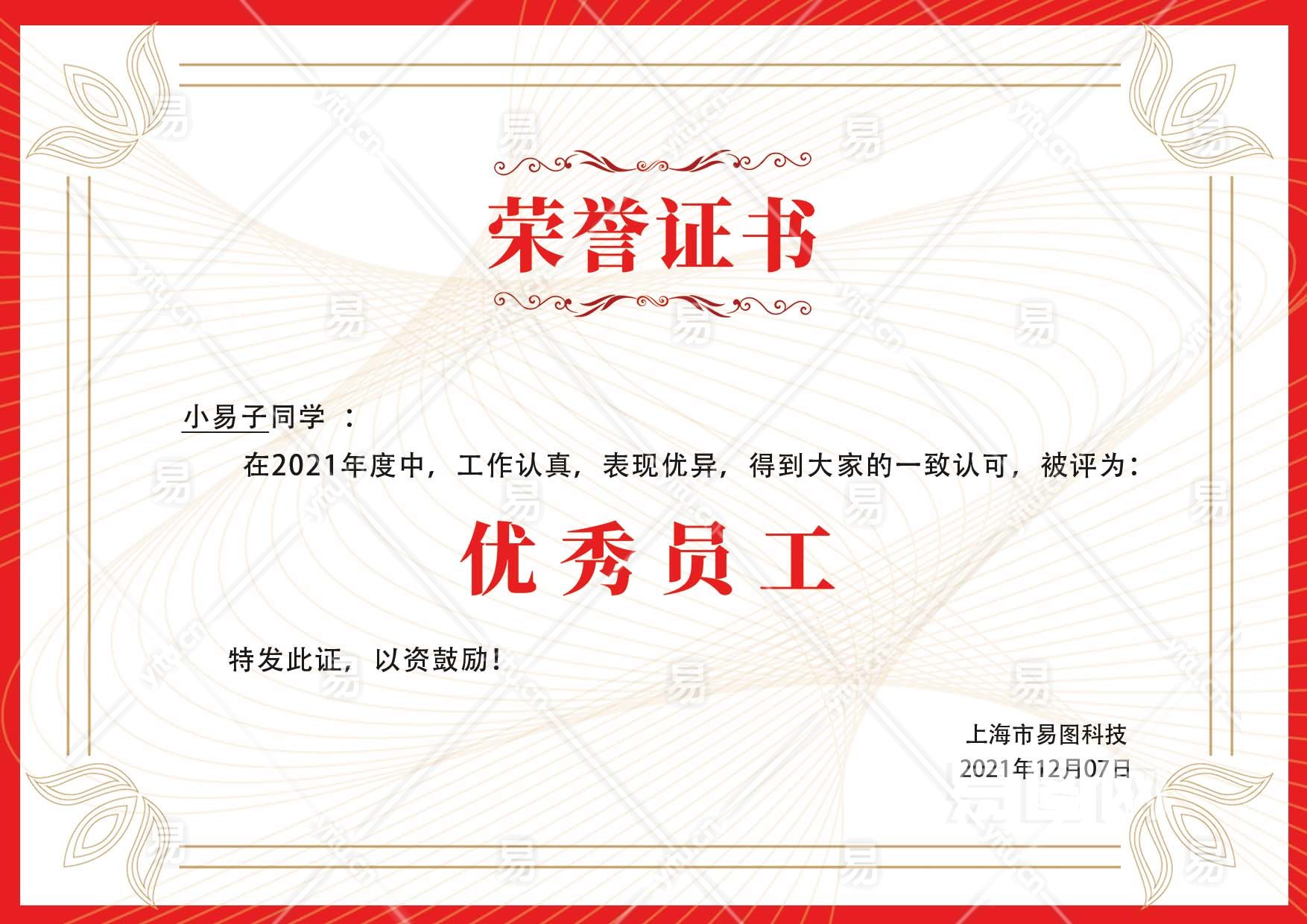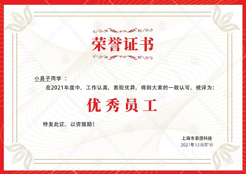 当前的位置:首页 > 广告设计 > 名片/卡证 > 荣誉证书 > 红边优秀先进员工荣誉证书版奖状