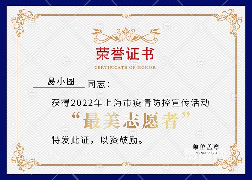 当前的位置:首页 > 广告设计 > 名片/卡证 > 荣誉证书 > 蓝色简约抗疫志愿者荣誉证书