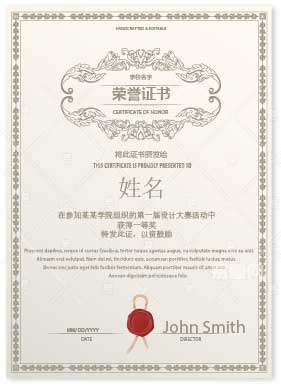 当前的位置:首页 > 广告设计 > 名片/卡证 > 荣誉证书 > 国际风格专项证书个人荣誉证书模板