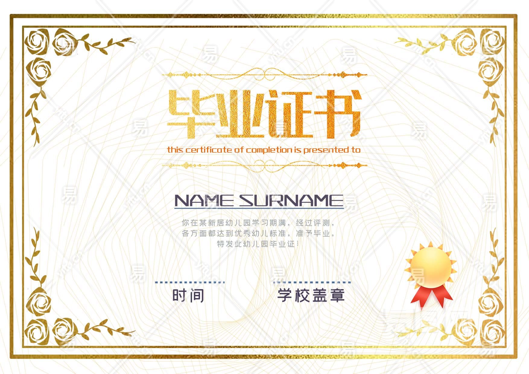 毕业渐变奖牌创世简约镶金边框黄荣誉证书