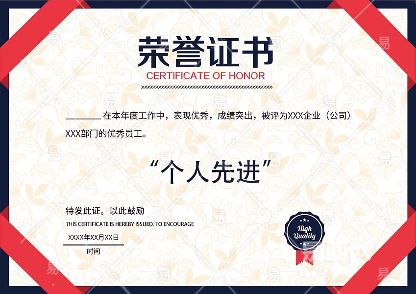关键词: 企业个人先进荣誉证书模板设计素材_素材中国_素材网_图片素材_PSD素材-素材库 素材库,易图素材网_企业个人先进荣誉证书模板免费素材共享平台.图片素材图库提供海量素材,图片下载,设计素材,PSD源文件,矢量图,AI,CDR,EPS,广告设计素材、VI设计素材、电商模板素材网和高清图片下载网站,提供海量的招聘海报模板素材、VI设计素材、名片设计素材、LOGO素材、网页设计模板等PS素材和高清图片下载,为设计行业优质的中国素材网站 特别说明:本站所有资源仅供学习与参考,请勿用于商业用途,如有侵犯您的版权,请及时发邮件联系我们(496343236@qq.com),我们将尽快处理。