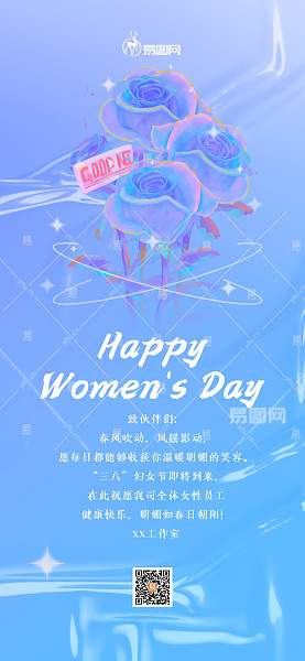 蓝色三八女神节祝福贺卡梦幻唯美全屏海报