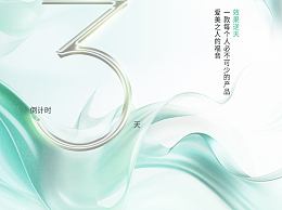 浅绿白创意丝绸线条抽象背景倒计时邀请函手机海报