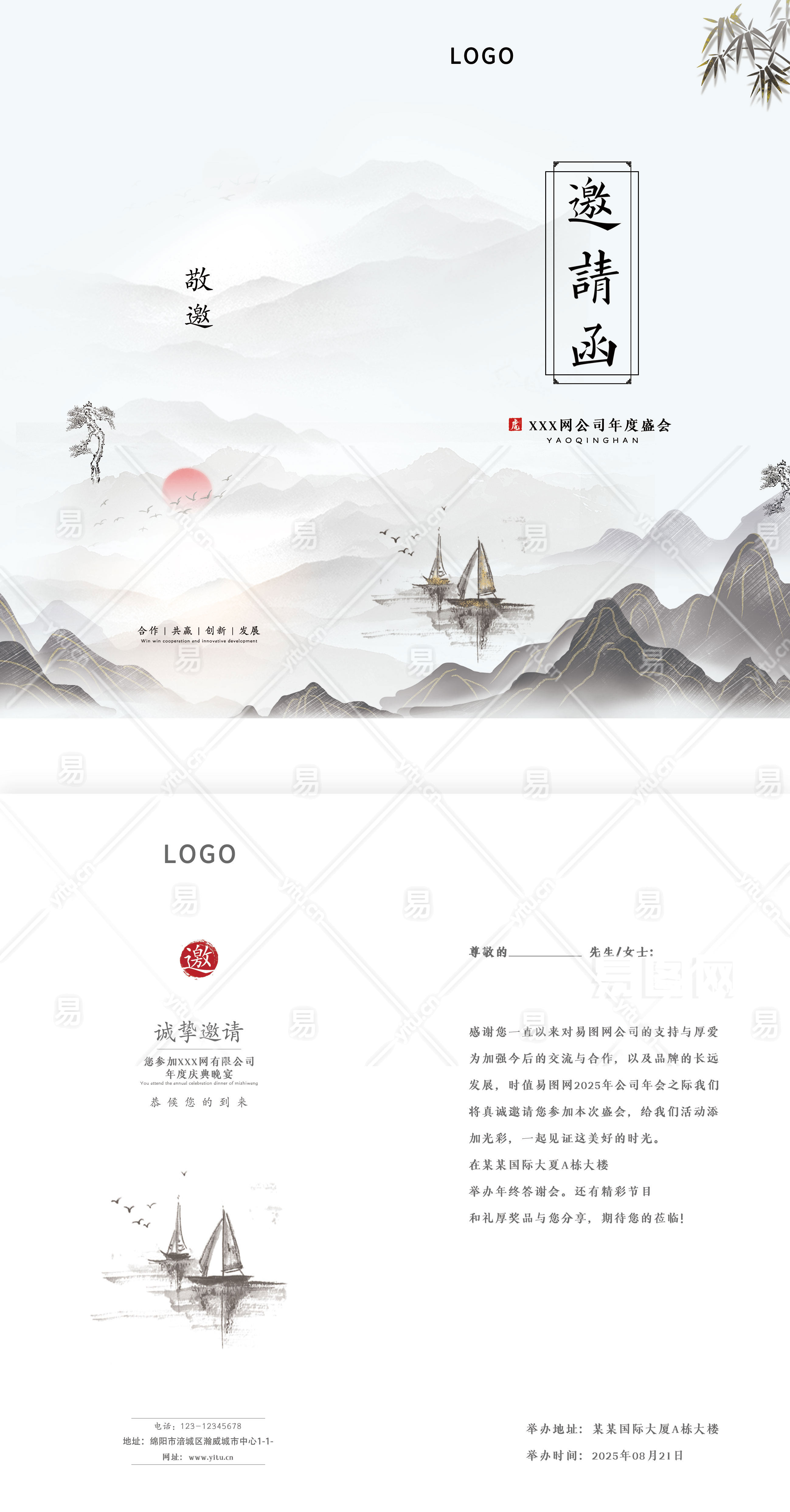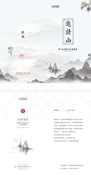 白黑中国风水墨简约传统意境邀请函年会邀请函