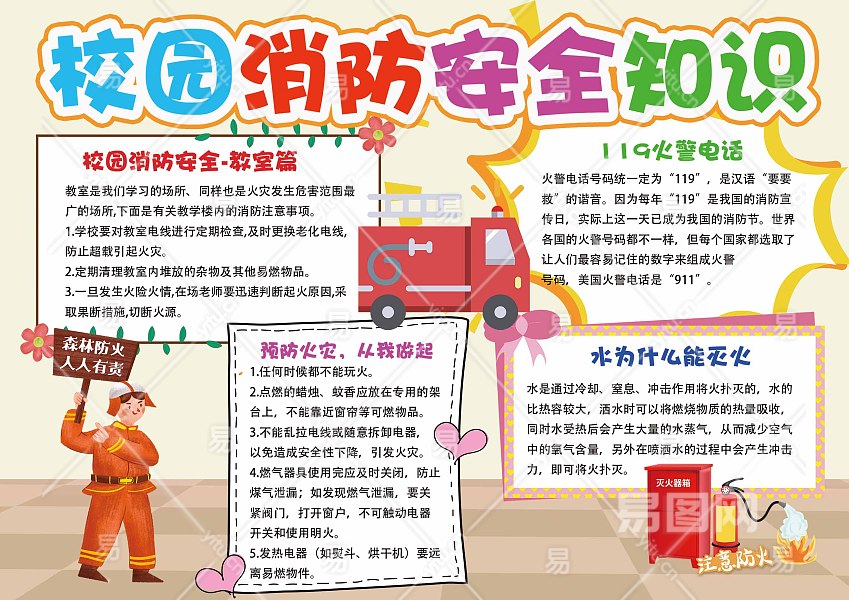 校园消防安全知识手抄报
