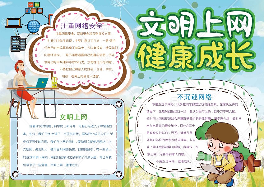 当前的位置:首页 > 广告设计 > 手抄报/小报 > 安全/健康手抄报 > 文明上网健康成长手抄报