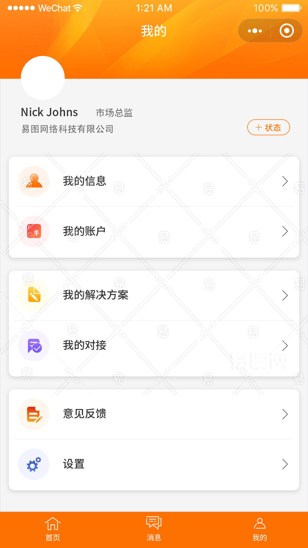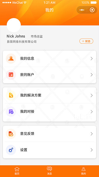 橙色简约风小程序我的页面设计手机