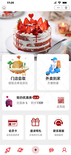 红色简约风甜蜜风蛋糕店美食店小程序APP点单外卖页面手机海报