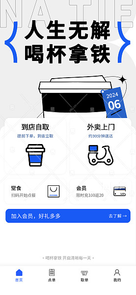 灰蓝色商务冷静创意风味咖啡拿铁美式摩卡堂食自取外卖微信小程序