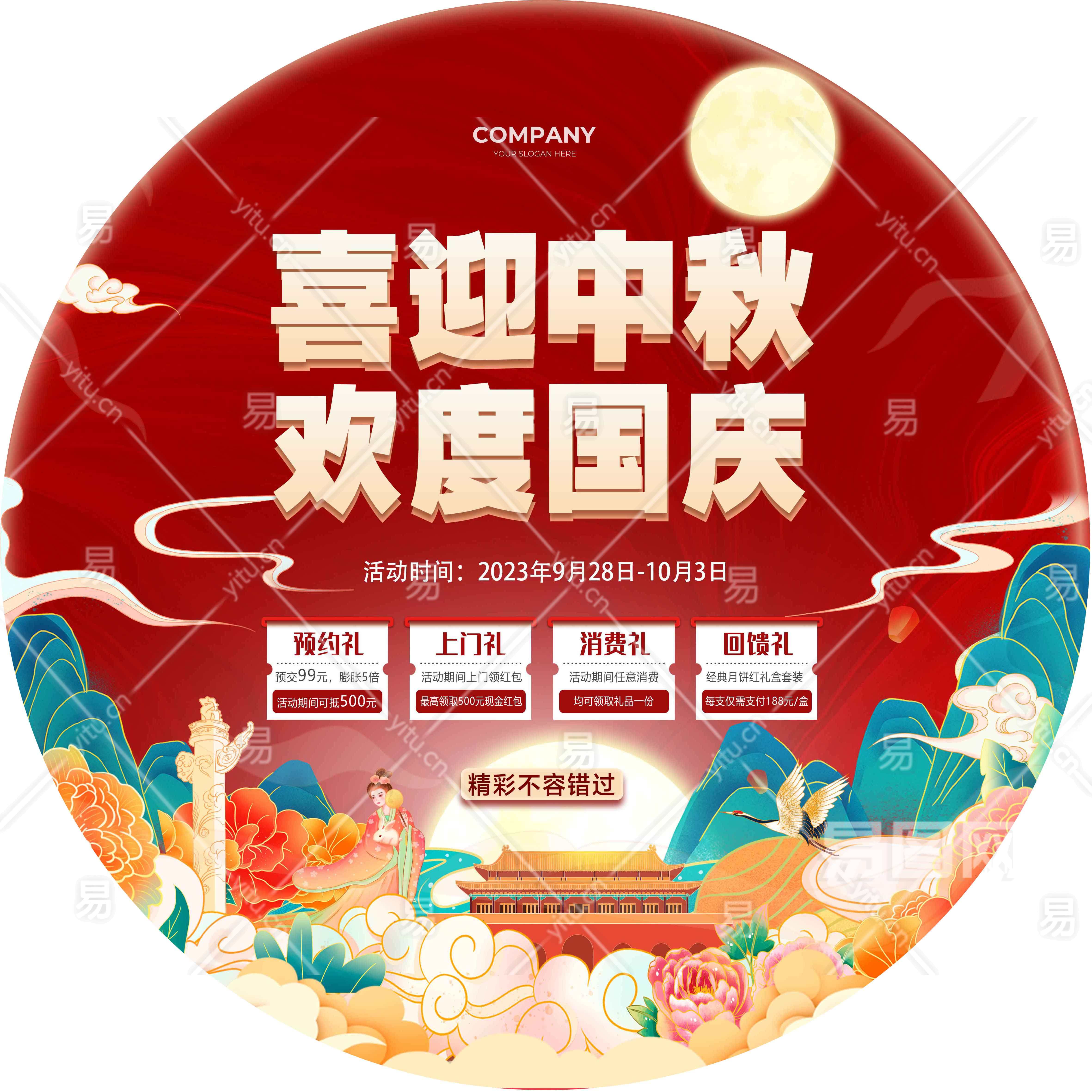 红色中国风国庆中秋地贴喜迎中秋欢度国庆海报国庆节国庆
