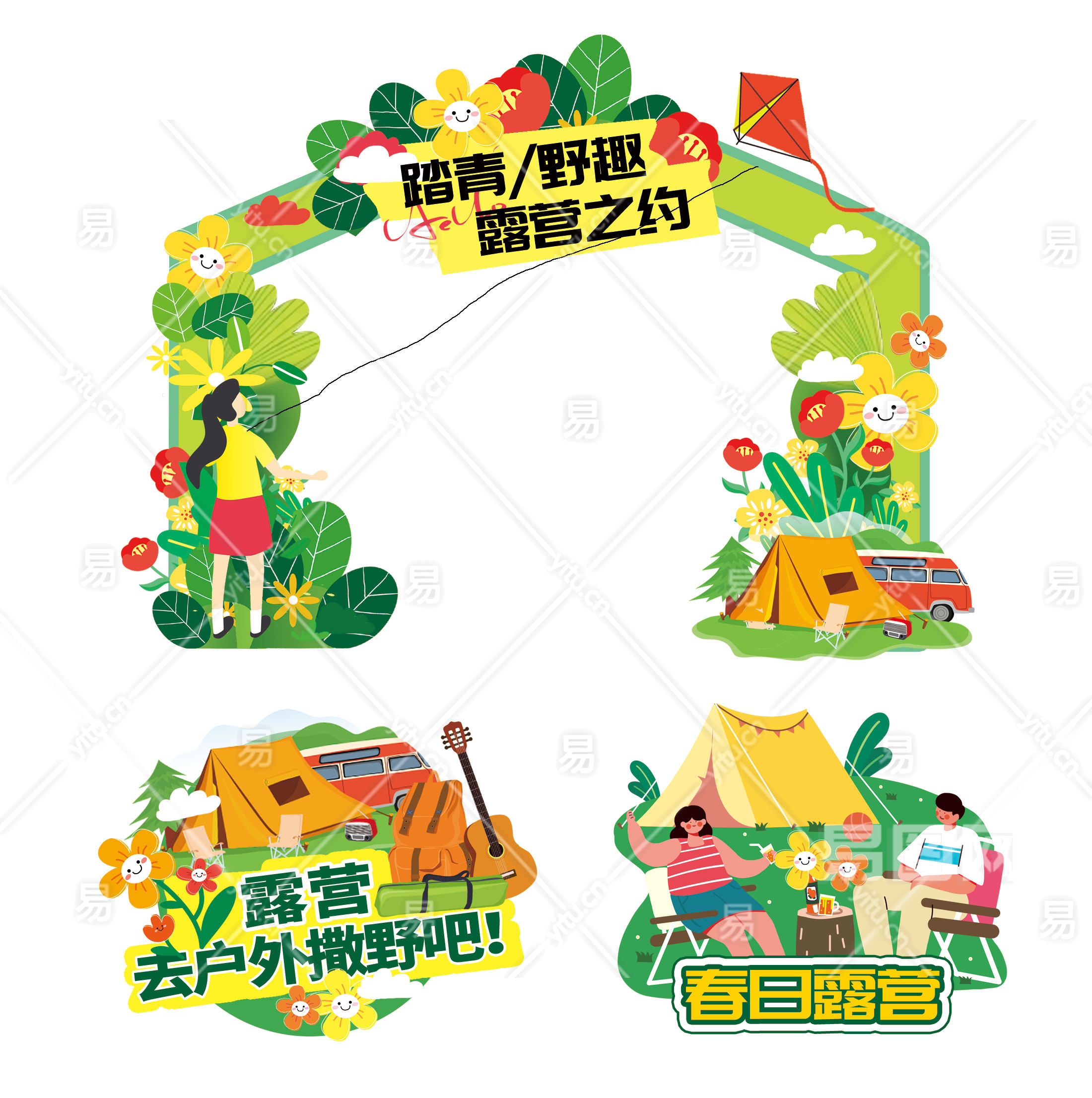 绿色系春天之约春日露营踏青简约门头地贴设计模板