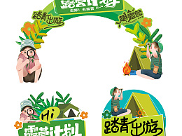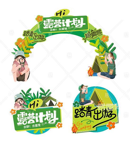 绿色露营计划春日露营冷色系简约门头地贴广告模板