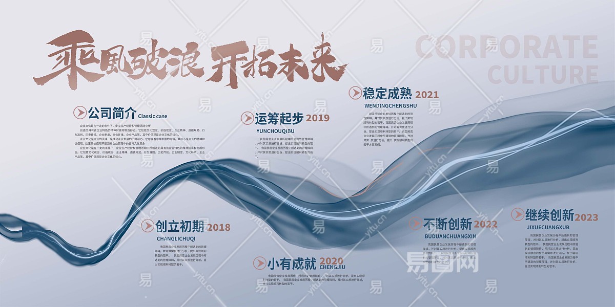 当前的位置:首页 > 广告设计 > 展板/展架 > 企业展板/展架 > 时尚大气乘风破浪开拓未来企业文化展板