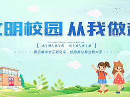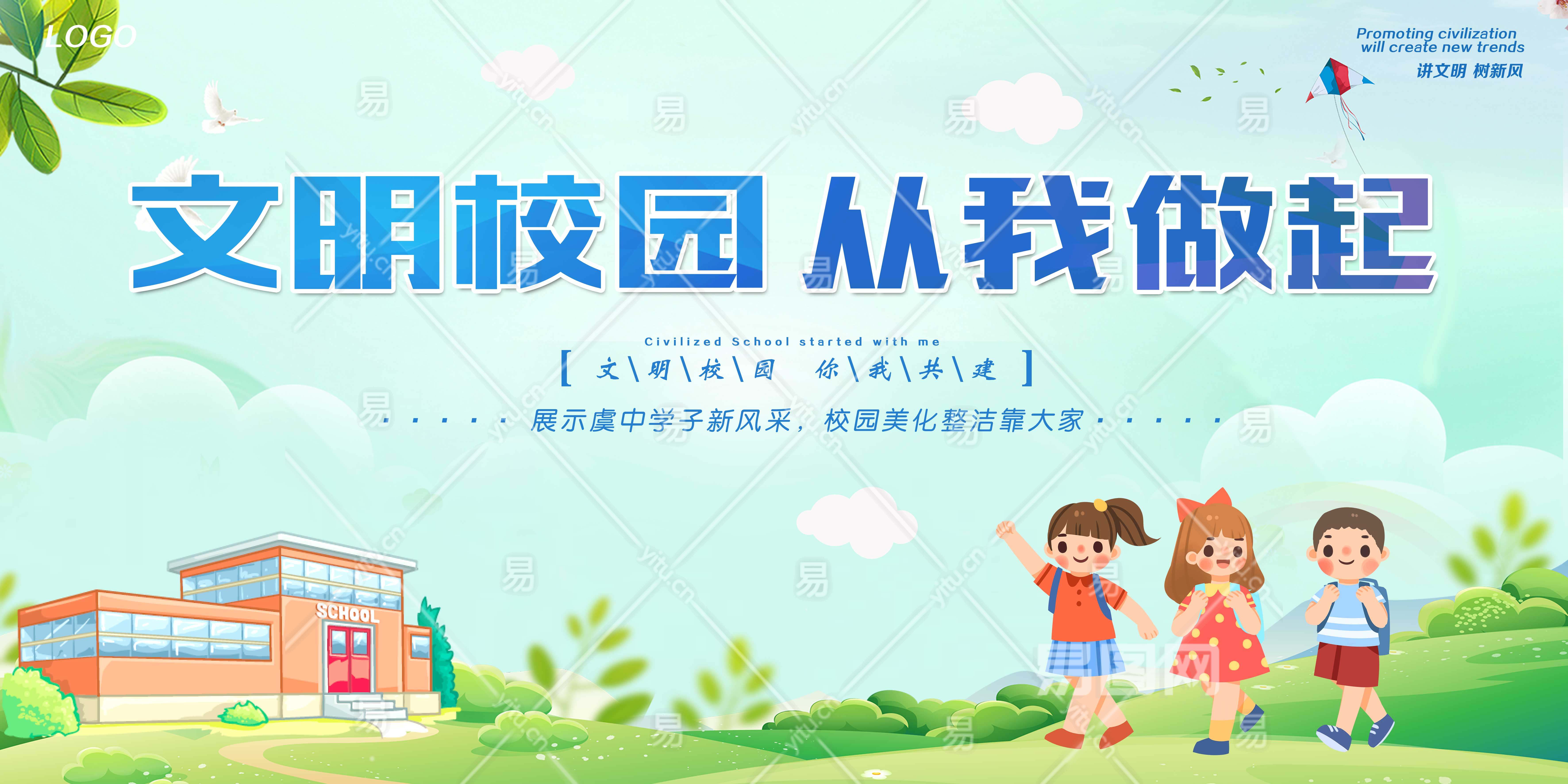 绿色简洁卡通文明校园从我做起宣传展板文明校园展板