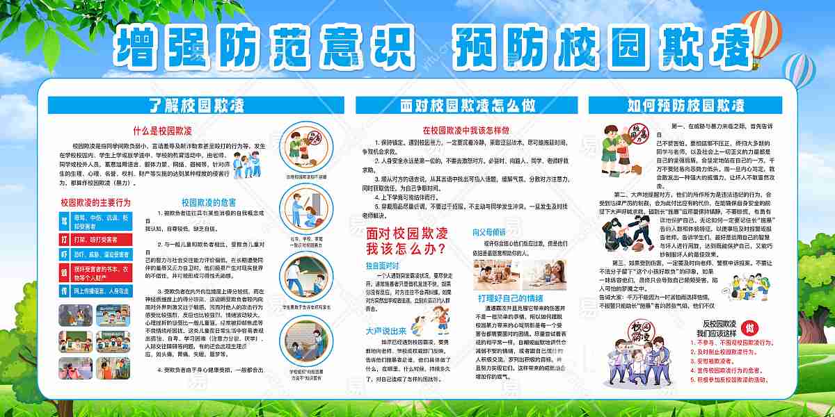 当前的位置:首页 > 广告设计 > 展板/展架 > 学校展板/展架 > 蓝色简约大气增强防范意识预防校园欺凌宣传展板宣传栏校园欺凌宣传栏